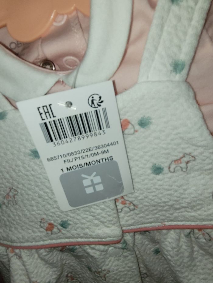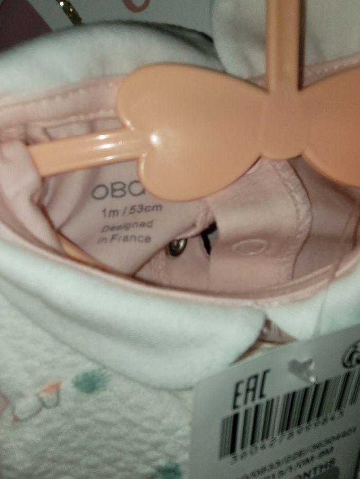 Barboteuse blanche et rose avec motifs animaux Body rose pâle et Cole Claudine blanc Idée cadeau 1 mois Neuf avec étiquette Okaidi obaibi