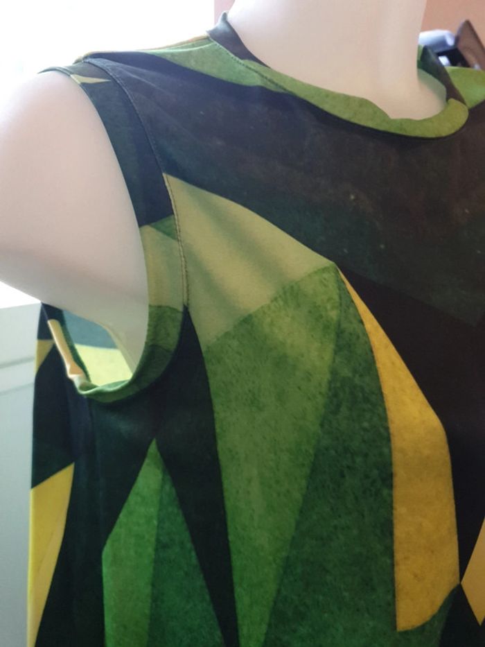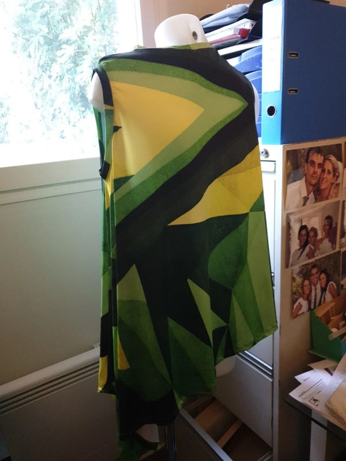 Michel Ludek Modèle unique Acheté en Afrique du Sud Tunique asymétrique coloris vert Superbe Etat neuf #blousefemme #tunique #tunique38 #blousesansmanches38