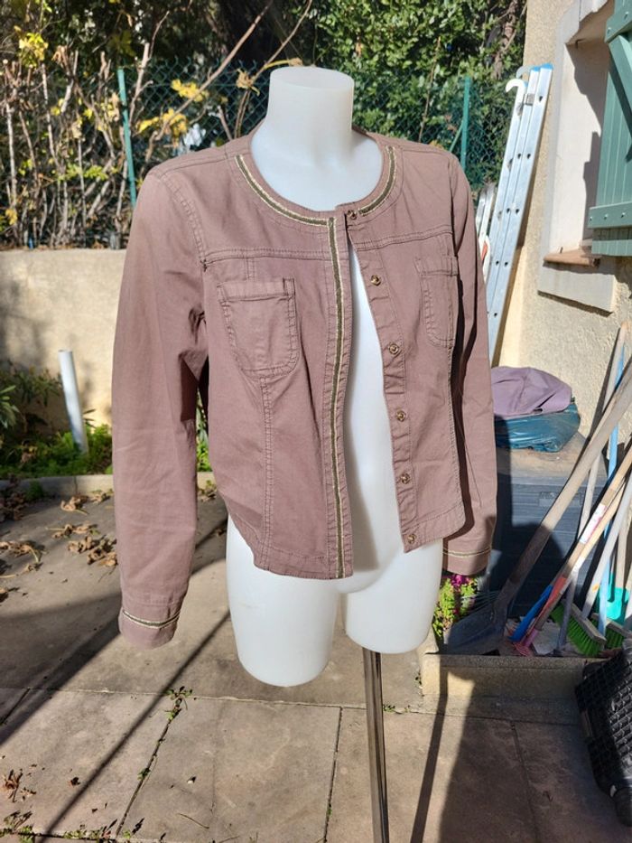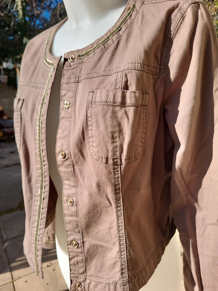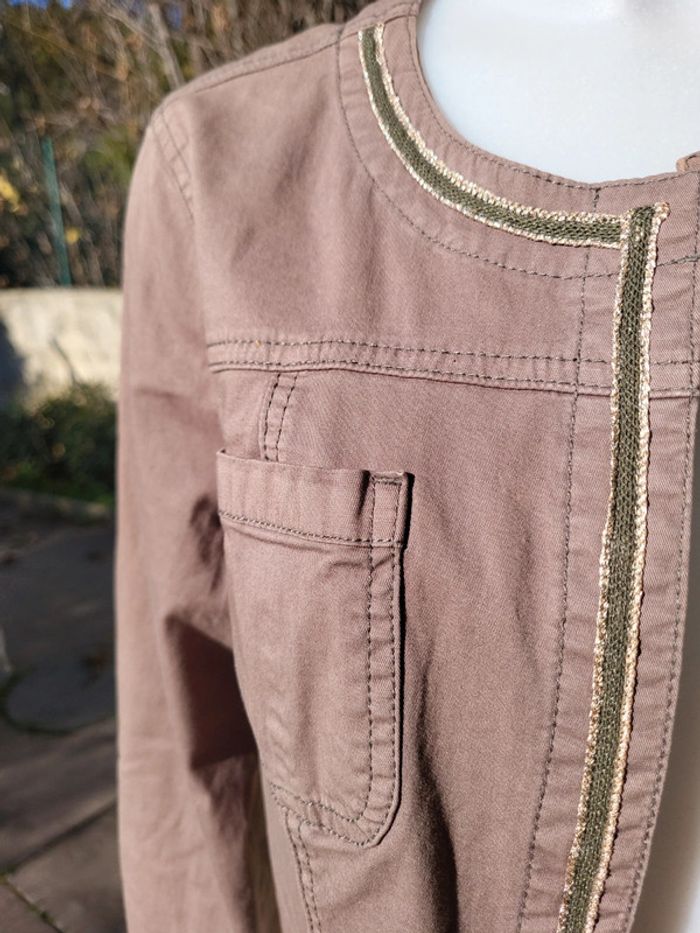 Morgan de toi Blouson court kaki Coton Ferme par pression Poches poitrinaire État neuf 42 mais taille petit #blousonfemme #blousonmorgan38 #blousonkaki