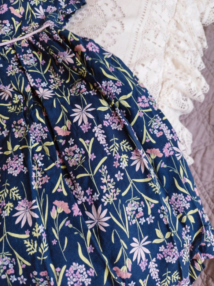 Jolie robe en coton doublée Fond bleu marine petites manches Fermée par boutons au dos État neuf #robe #2ansfille #robebébéfille #robecoton24mois #robeete24mois