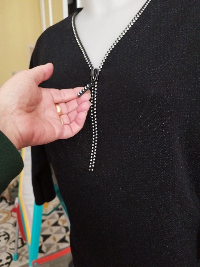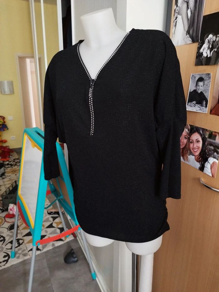 Blouse légère Long zip argenté Manches resserrées sur les avant bras État neuf #blousefemme #blousenoire #blouseargentée #tunique #tuniquenoire38