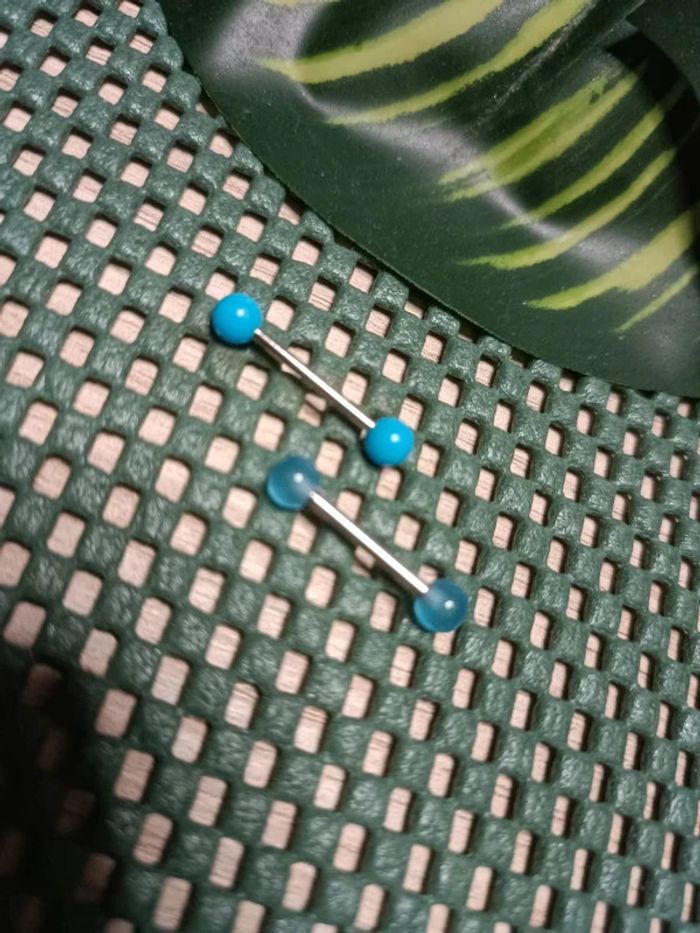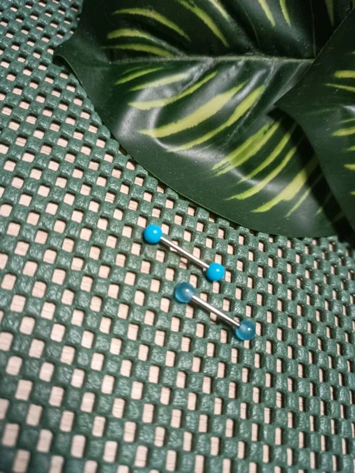🔸Lots de 2 piercings langue avec barre en acier chirurgical : -un transparent bleu ciel -un bleu ciel turquoise. Jamais utilisé, Neuf.🔸 #Justeeuxbijoux 🔸Envoi rapide et soigné, colis fragile bien protégé. 🔸 🔸Toujours avec petit cadeau aléatoire.🔸 🔸Réduction Jusqu’à 15% activé en Lot. N'hésitez a venir faire un tour dans mon dressing 🤗🔸