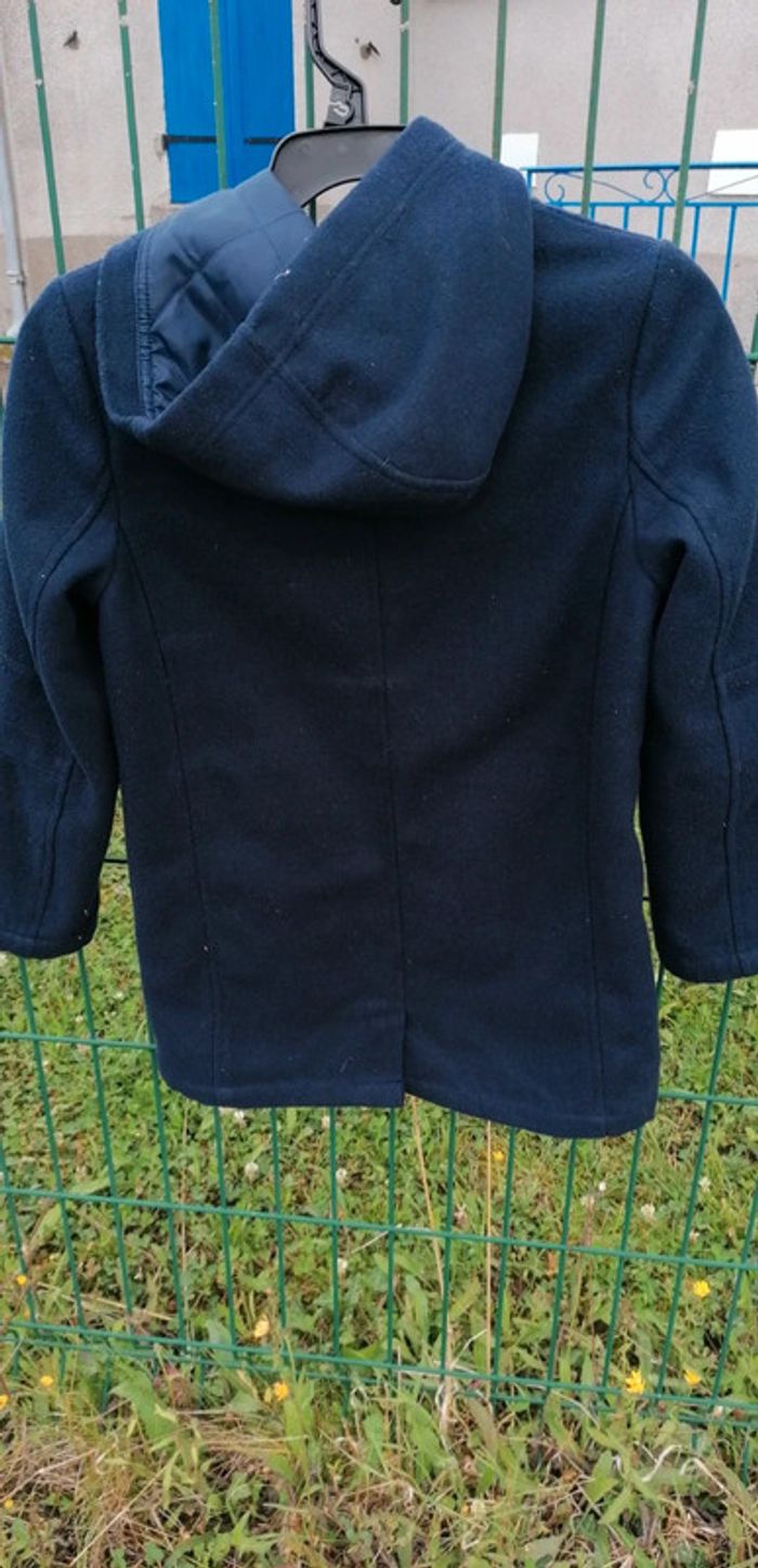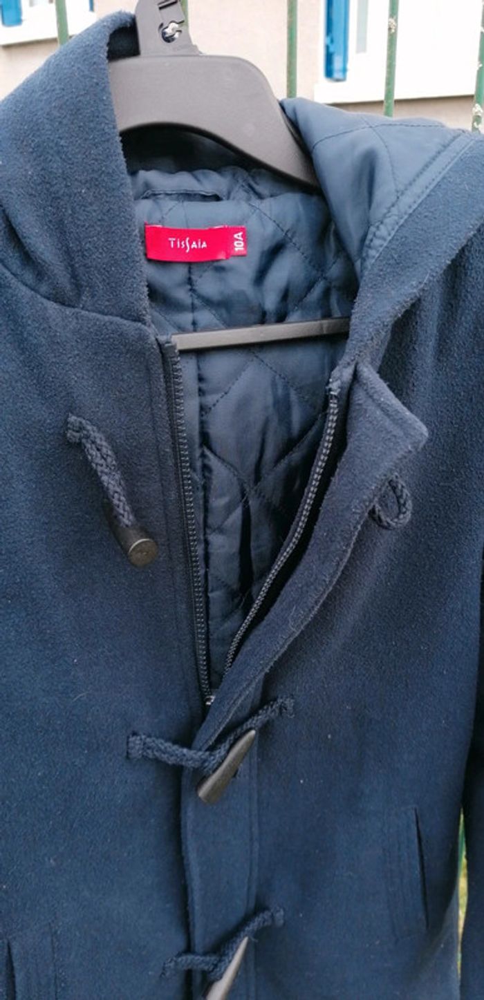 Manteau bleu en parfait état. Couleur bleu. Fermeture et attache