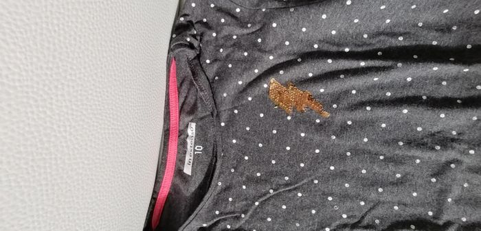 Tee shirt gris a pois blanc avec petit motif éclair en sequin