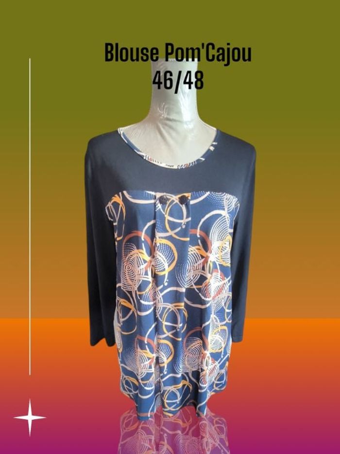 Magnifique blouse Neuve taille 46/48 Marque Pom'Cajou Très extensible , belle matière stretch Dimensions à plat : cm env Aisselles à aisselles : 56 cm Longueur : 71 cm Manches 3/4 #dilo2103femme46 #dilo2103femme48