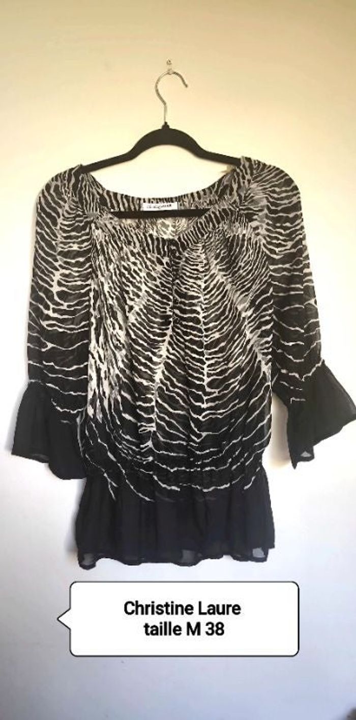 Magnifique blouse légère semi transparente Taille 36/38 Marque Christine Laure État général impeccable, aucun défaut. #dilo2103femme36 #dilo2103femme38