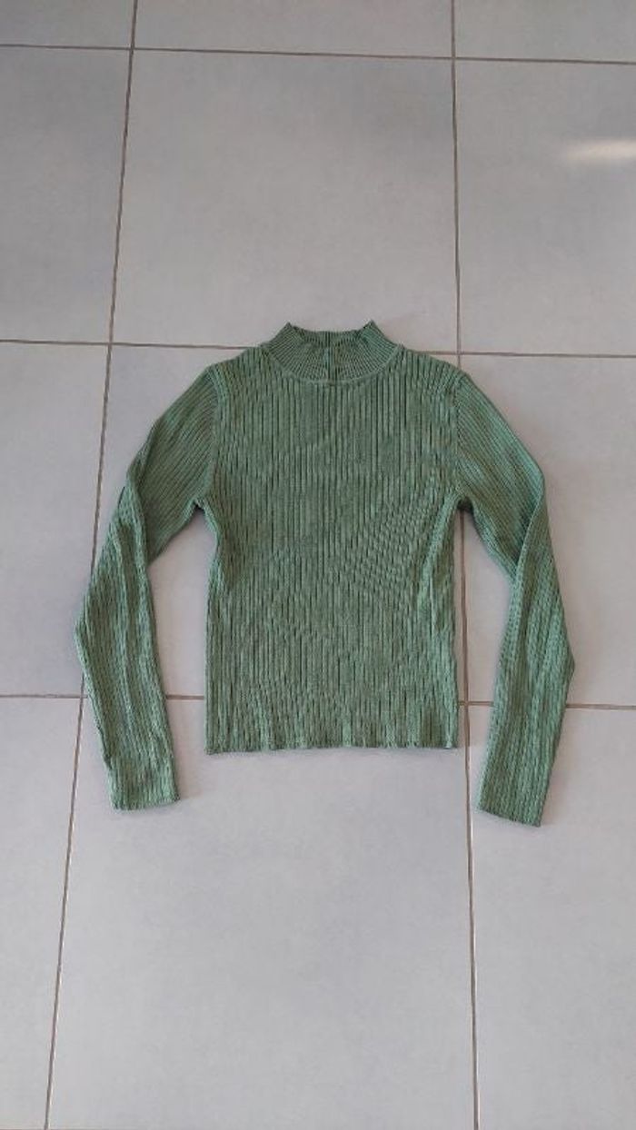 Pull léger, vert, côtelé avec petit col. Marque Primark Taille XS / 34. Très bon état