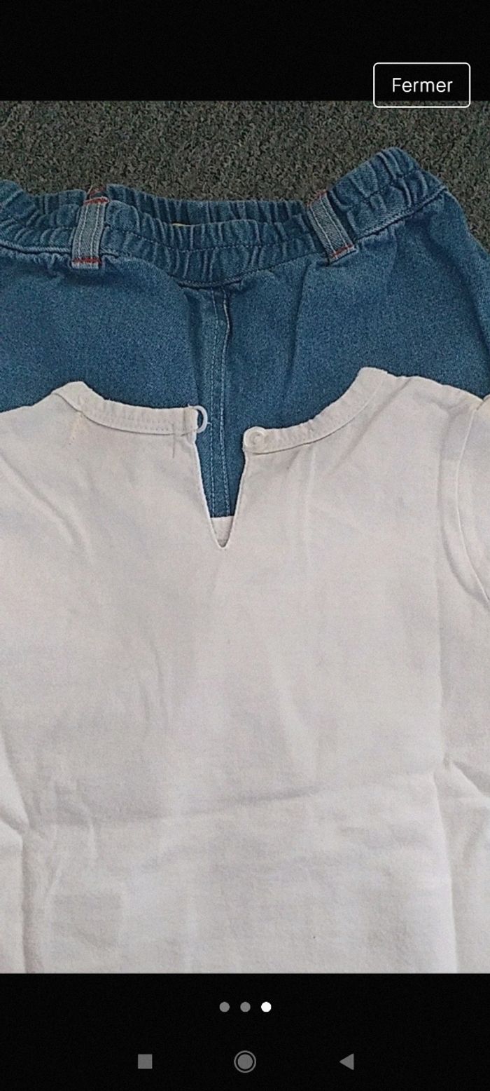 Ensemble fille pantalon élastique jean et tee-shirt imprimé manche courte attache un petit bouton à l arrière pour fermer