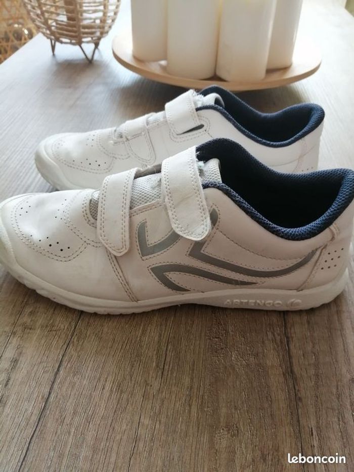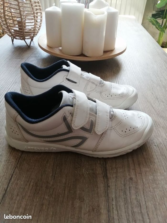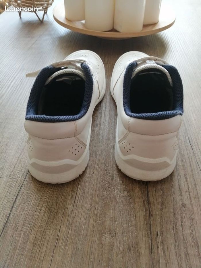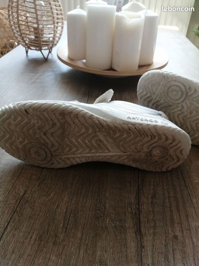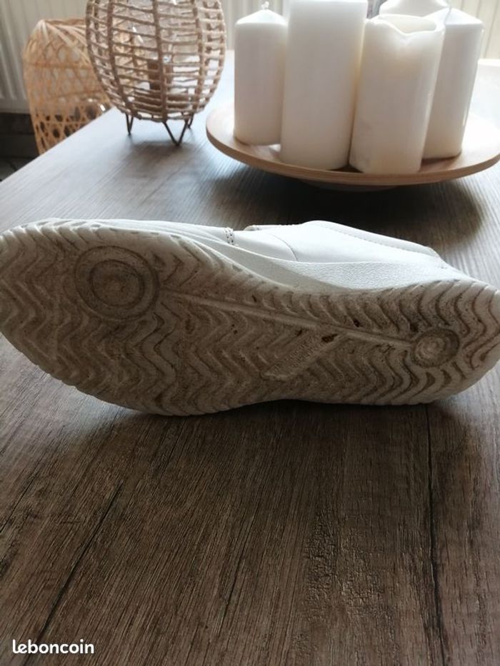 Basket blanche femme Pointure 38. Elles ne sont pas neuves. Elles ont étaient portées souvent mais elles sont encore dans un bon état général.