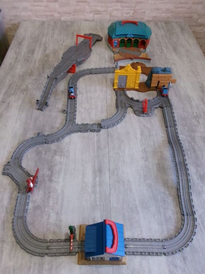 Circuit de train - Thomas et ses amis, Thomas and Friends, Thomas & ses amis, Trein, treinini, tren thomas, zug en super bon état. L'élément de la mine a les portes qui s'ouvrent ou se soulève, et se replie en quelques secondes. Une rampe pour faire la course ou créer une descente et la staiton de lavage. Vendu avec 2 locomotives Thomas en bon état. Multiples possibilité de constructions possible. avec les échangeurs peux courants. Je donne la gare car elle a des éléments de cassés mais est fonctionnelle pour jouet avec. Mon dressing est trié par catégories, tailles et saisons pour les vêtements. #sonia222404 #jouetenfantsonia222404 #thomasetsesamis #trains #locomotives #trains #trainsthomas