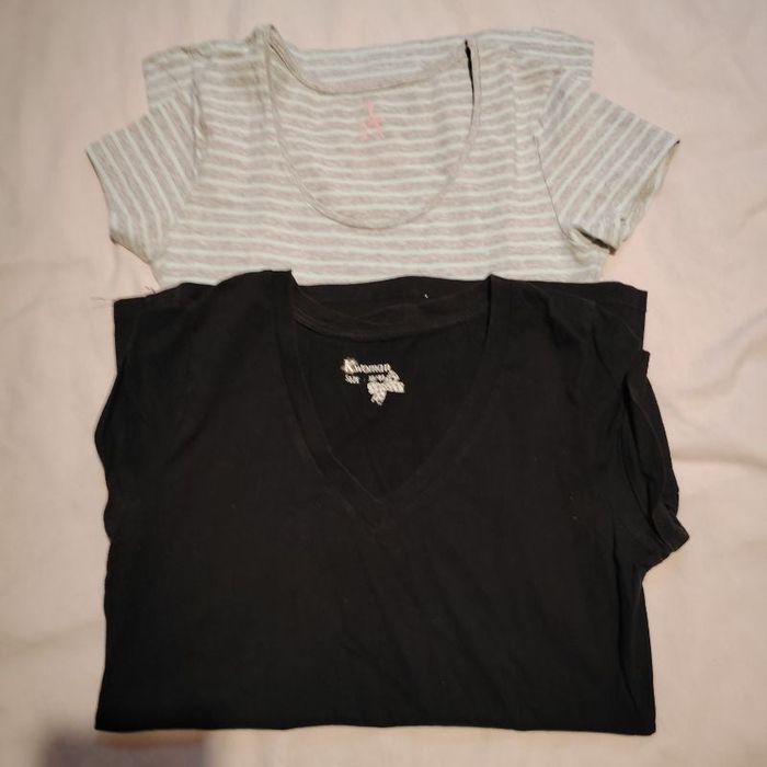 Lot 2 t-shirts taille 38 : - rayé bleu et gris ATMOSPHERE - noir K WOMAN