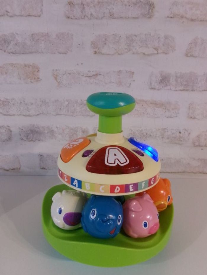 Toupie animaux en super bon état, le dessus blanc à jauni, avec ses 4 balles rondes en forme d'animaux, on peux choisir plusieurs langues, anglais, français et espagnol, et, récite également l'alphabet et plusieurs chansons à son répertoire. Les sons et lumières fonctionnent parfaitement. Mon dressing est trié par catégories, tailles et saisons pour les vêtements. #sonia222404 #jouetenfantsonia222404