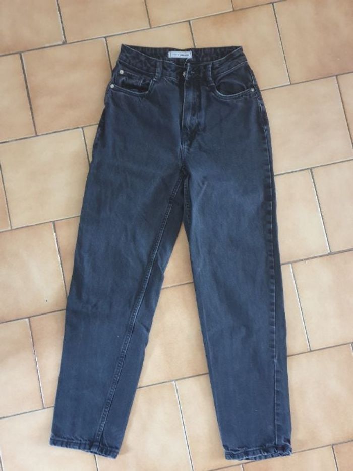 Jean noir, légère usure bas du jean (voir photo)