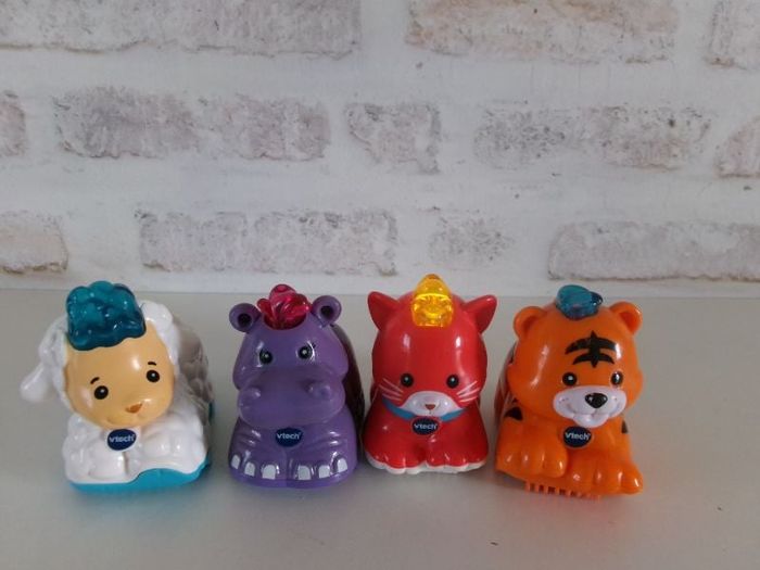 Lot tut tut animo Vtech en bon état et fonctionnent tous parfaitement piles incluses. Frisette le mouton à bouclettes, Gribouille le tigre à chatouilles, Paprika le bébé chat, Lilo l'hippo rigolo.