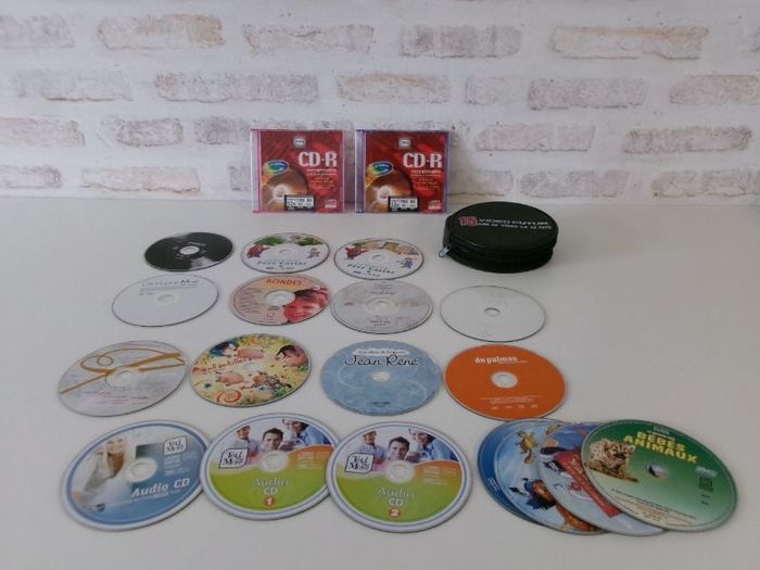 Lot CD Vierge et CD - DVD sans boitiers. Ce lot comprend : - 2 CD enregistrable neuf sous blister, - 1 sacoche de transport en bon état, - des CD de comptines et d'histoires pour enfant en bon état, - 4 DVD dont 2 Zakari en bon état - CD de Corneille, Christophe Maé, Jenifer, Alain Souchon, De palmas, en bon état. - CD audio "Tell me More" en bon état Mon dressing est trié par catégories, tailles et saisons pour les vêtements. #sonia222404 #jouetenfantsonia222404