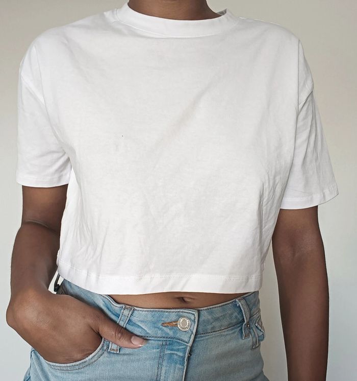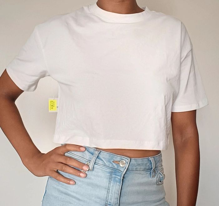 T-shirt blanc court style crop top neuf, de la marque Ardene Basic, Taille S