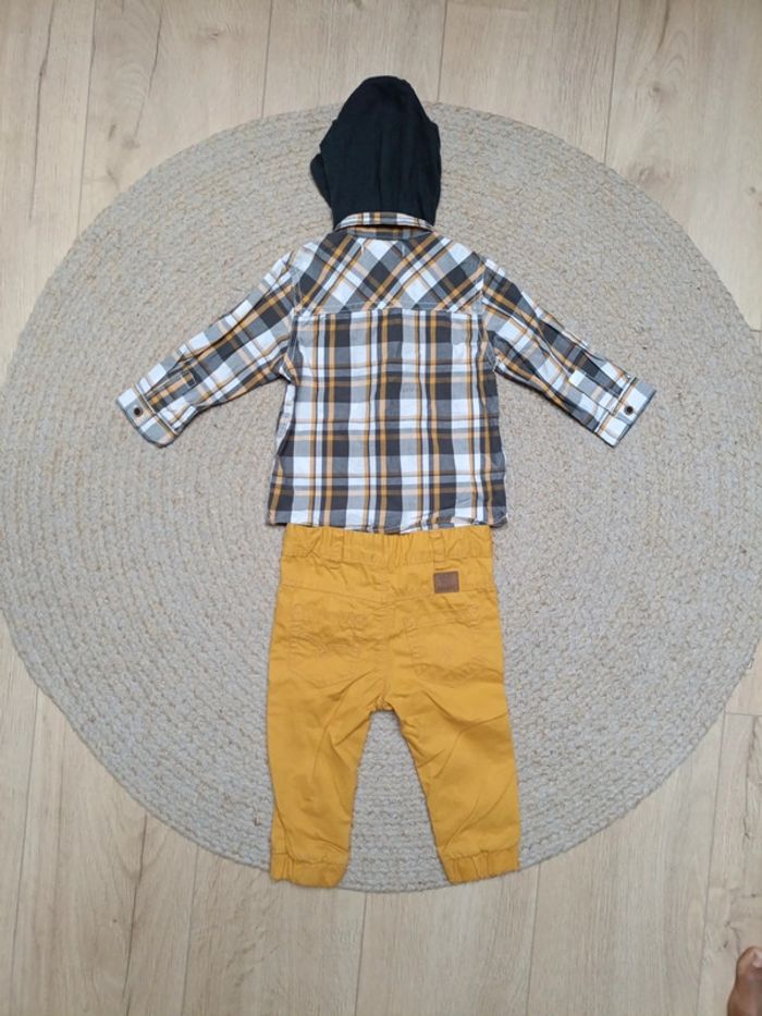 Chemise à carreaux/pantalon jaune 12M - photo numéro 4