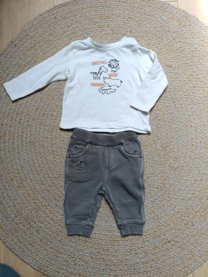 Ensemble pull léger / pantalon style jogging Pull de la marque lupilu taille 2-6 mois, pantalon de la marque kitchoun 3 mois, en très bon état