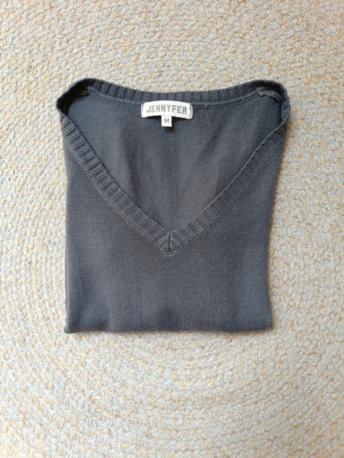 Pull col V gris foncé, très bon état, taille M