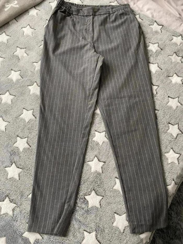 Pantalon gris à rayures blanches Porté quelques fois #sarah28160pantalon #sarah28160tailleM
