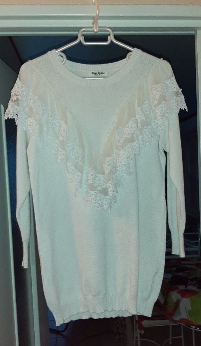 Pull long. Blanc cassé. Paris & Moi Collection. Dentelle Largeur sous aisselles 48 Longueur 72 Composition complète voir étiquette en photo Quelques discrètes bouloches