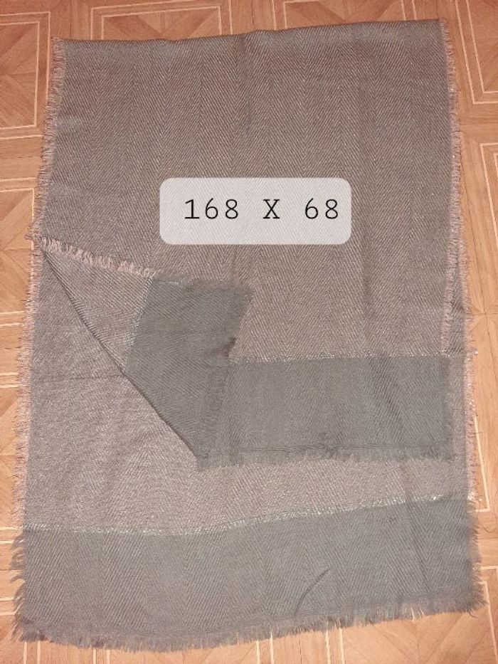 168X68 écharpe à franges. Fils dorés. Marron clair.