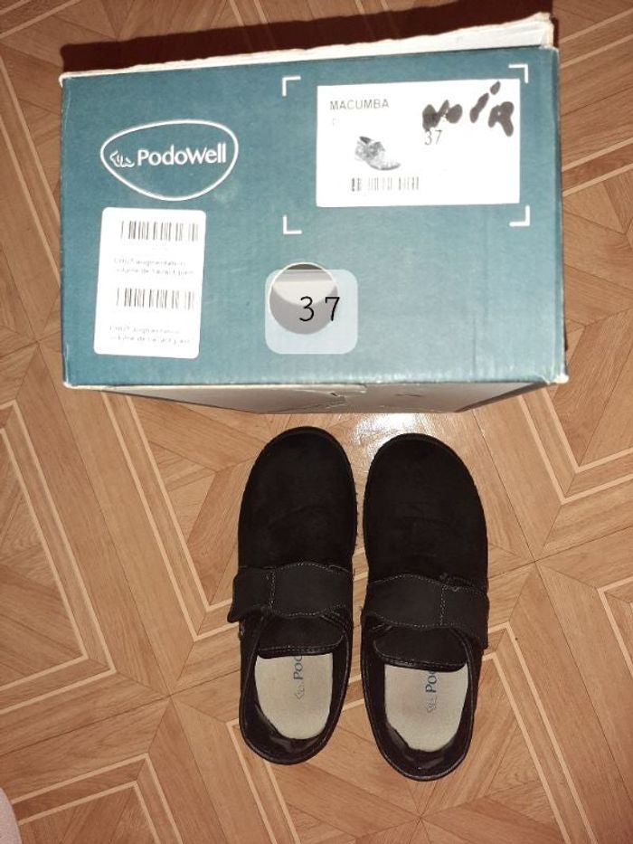 Podowell thérapeutique noir 37. Chaussures/Chaussons velours noir à scratch. Utilisables en extérieur/intérieur. Semelle amovible. Lavable. Hygiène parfaite....conviennent pour pied large et fort.
