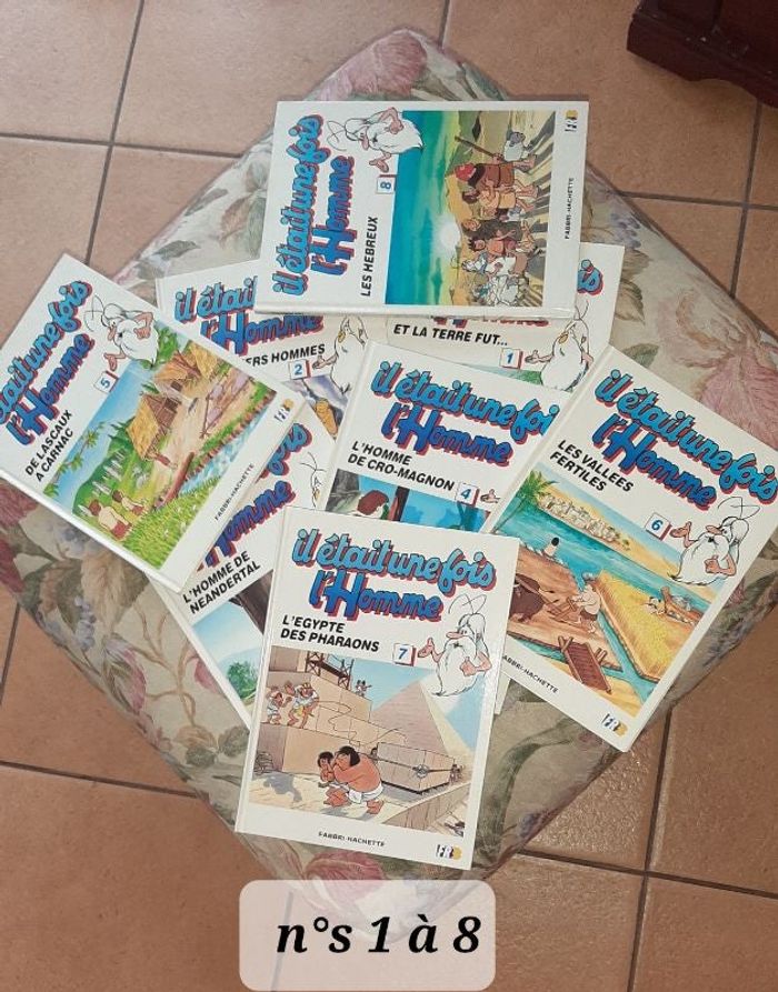FABRI HACHETTE 8 numéros : il était une fois l'homme N° 1 et la terre fût N° 2 les premiers hommes N° 3 l'homme de Neandertal N° 4 l'homme de Cro-Magnon N° 5 de Lascaux à Carnac N° 6 les vallées fertiles N° 7 l'Egypte des pharaons N° 8 les Hébreux LES 8 NUMEROS en parfait état. Un glossaire en fin de chaque livre ainsi que des petites questions : TE SOUVIENS-TU, se rapportant à chacun des livres et de belles illustrations. Vendus 4€ à l'unité (ou sinon par lots). Photos supplémentaires et autres renseignements possibles !