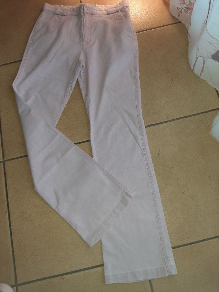pantalon coupe classique Caroll 40 Coupe classique, 85% coton, 13% polyester, 2% élasthane. Rose pétale (rose pâle) Longueur 107, longueur depuis l'entrejambe 82, largeur bas des jambes 22. Passants ceinture, poches devant et arrière. Je signale : 1 discrète tache sur le bas. Contour du bas des jambes légèrement marqué, cela ne se voit pas pantalon porté. Voir 2 dernières photos.