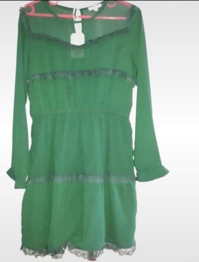 Robe / tunique. Lili & Lala Taille M (elle taille grand) 100% polyester. Entièrement doublée. Bas des manches volanté. Bas dentelle. Taille légèrement élastiquée. Longueur 87cm.