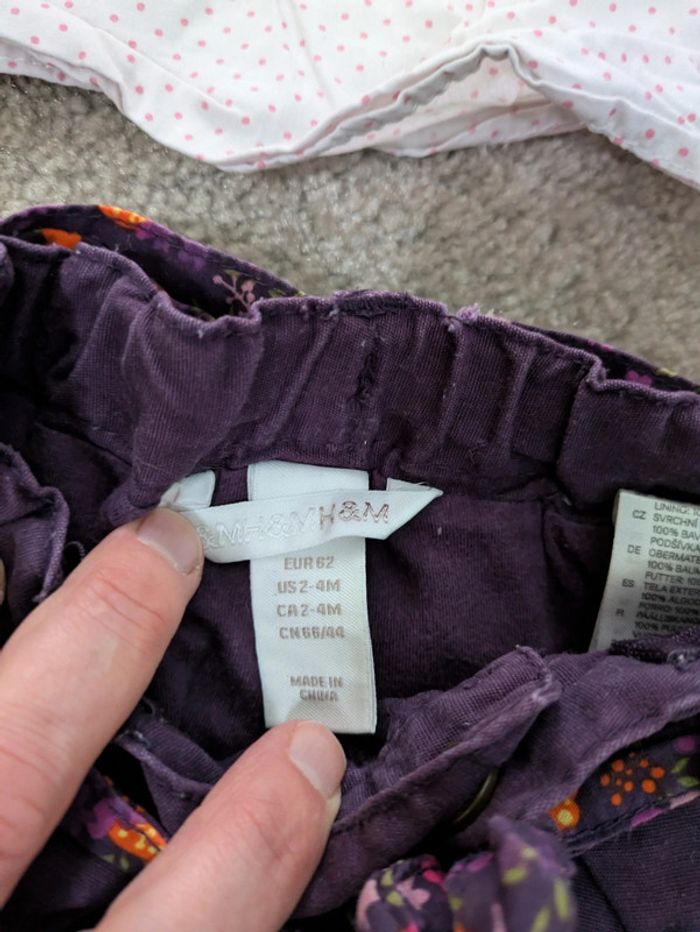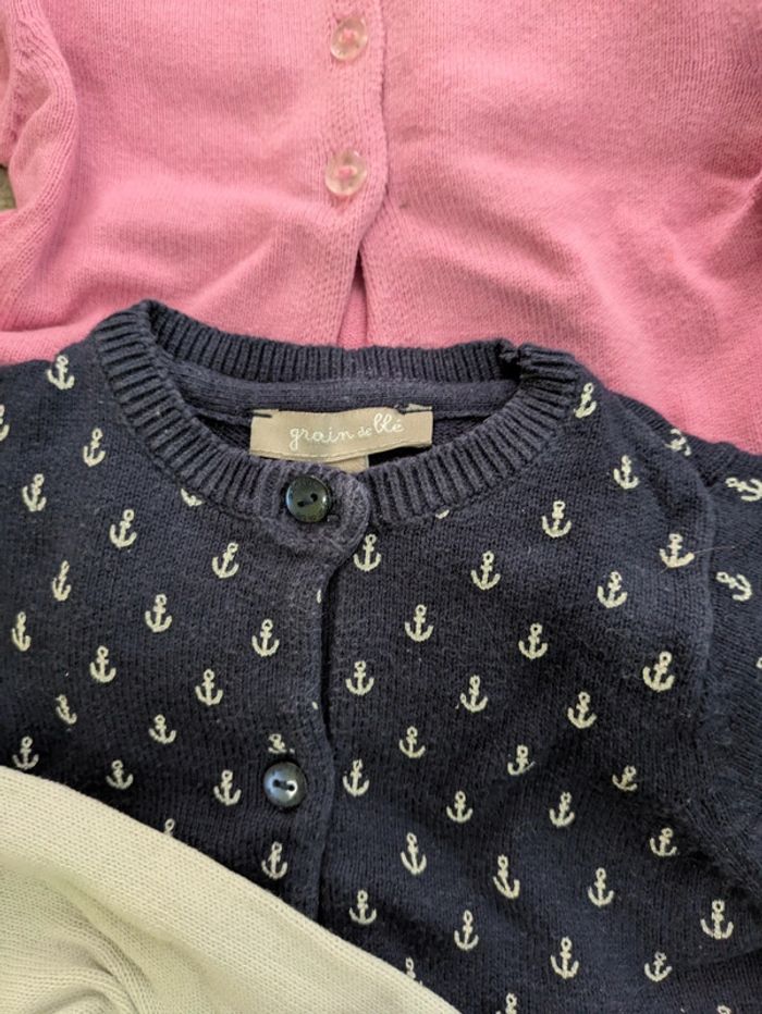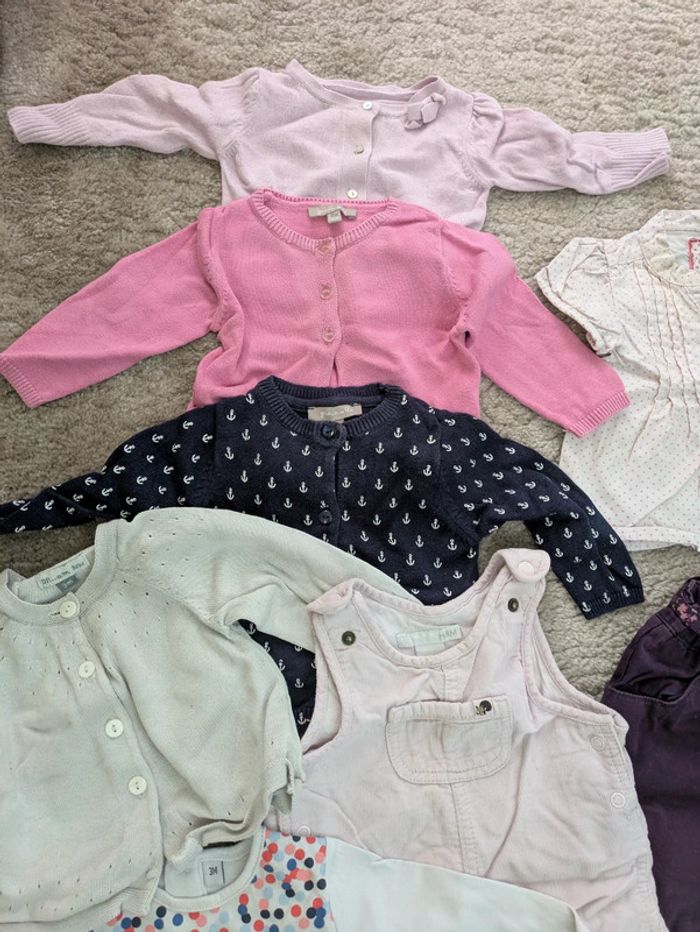 Lot de vêtements fille 3 mois - une salopette H&M - un pantalon H&M - 4 gilets (2 grain de blé) - 3 hauts manches courtes - 1 haut manches longues En bon état (certains hauts ont des petites tâches) Réduction sur les lots Merci d'éviter les envois par vinted go
