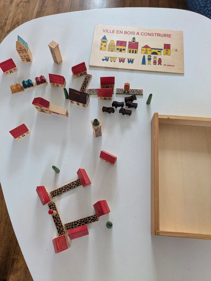 Boîte de jeu en bois 'ville en bois à construire', incomplet (38 pièces au total) Réduction sur les lots Merci d'éviter les envois par vinted go
