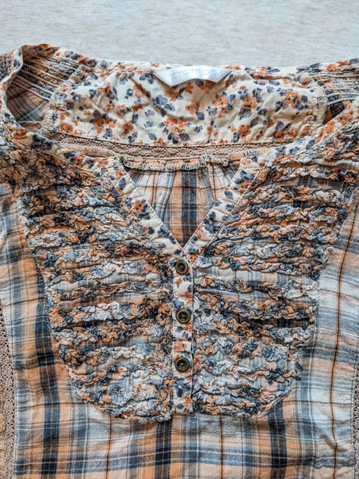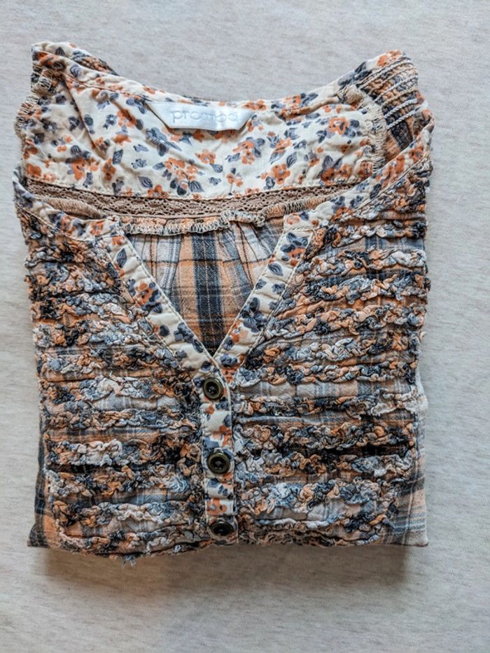 Joli haut style country, manches 3/4, porté mais encore en bon état, marque promod Taille S Réduction sur les lots Merci d'éviter les envois par vinted go