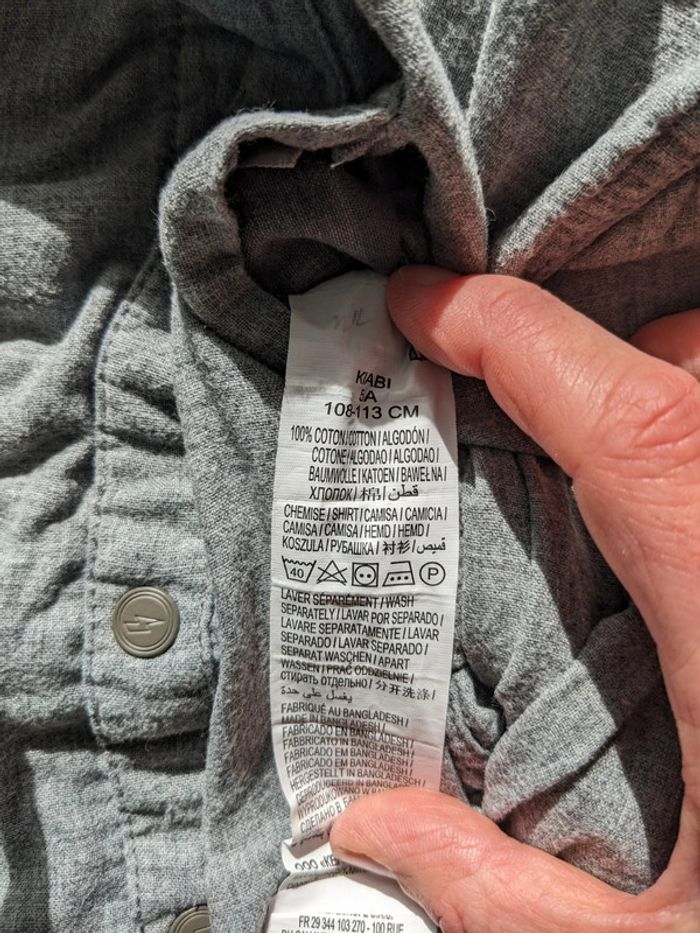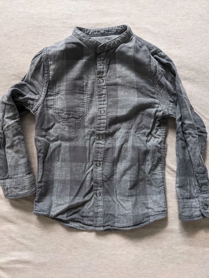 Chemise en coton réversible kiabi taille 4 ans, un côté à carreaux, un côté gris avec une petite tâche sur la manche (voir dernière photo) Réduction sur les lots