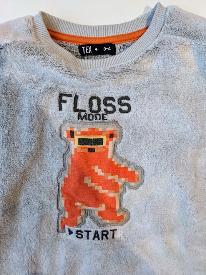 Sweat 3-4 ans tout doux motif ours pixel, marque TeX, bon état Réduction sur les lots