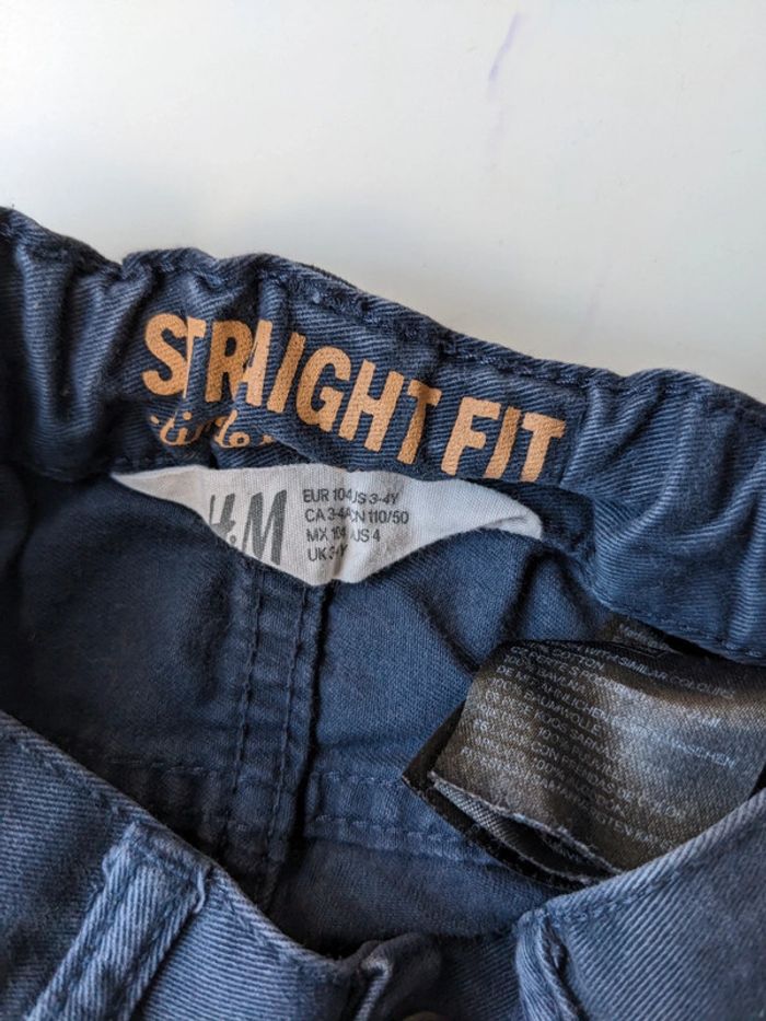 Pantalon H&M en coton, taille 3-4 ans, réglable à la taille, en bon état et un autre pantalon H&M taille 4-5 ans en cadeau car tache à l'arrière (voir dernière photo) Réduction sur les lots