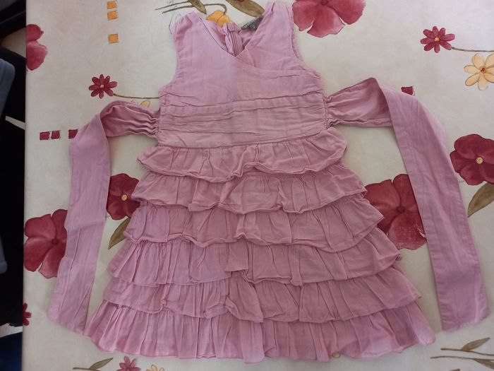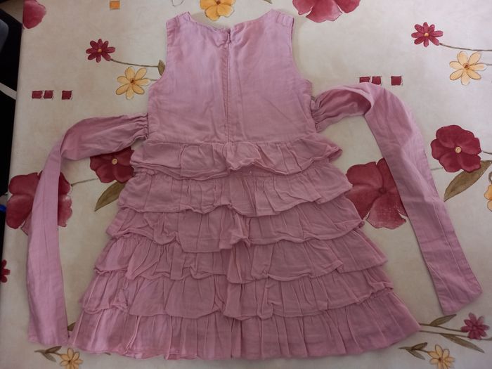 Robe à volants, lanières à nouer à l'arrière et fermeture par tirette. (Voir photo 2)