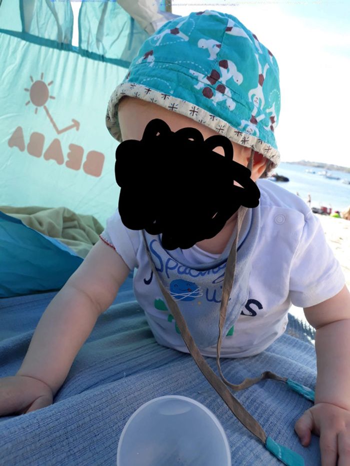 Joli chapeau léger taille 6-9 mois, très bon état Réductions sur les lots