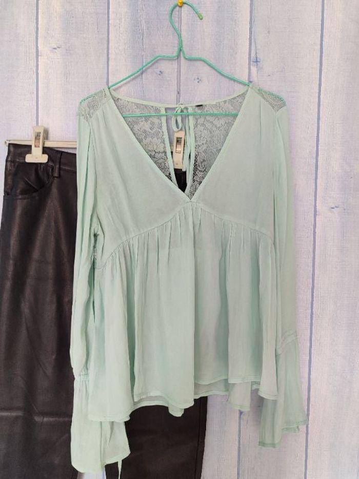 Pantalon similicuir avec une jolie blouse hyper légère et fluide ,dont j'ai plus la marque.