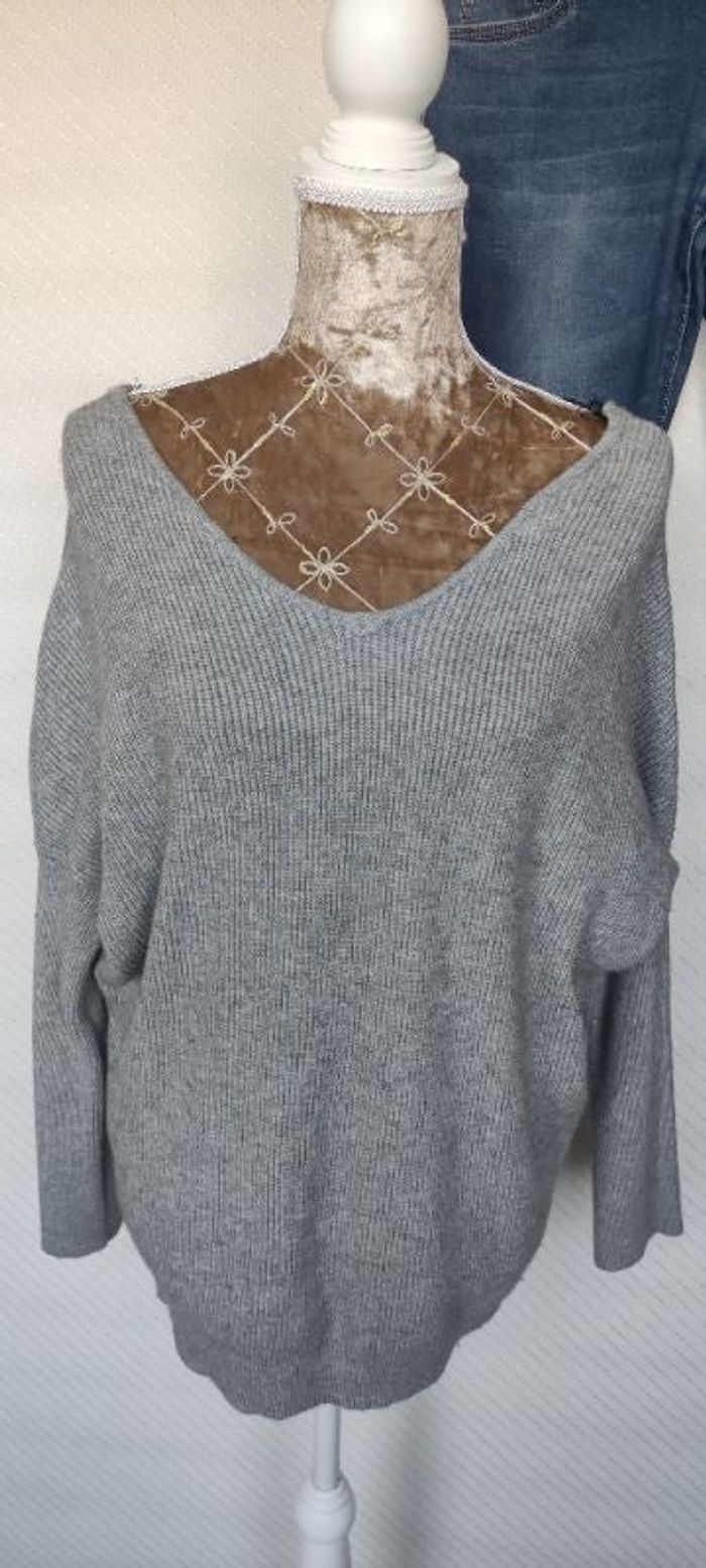 Pull gris avec petite dentelle a l'arrière