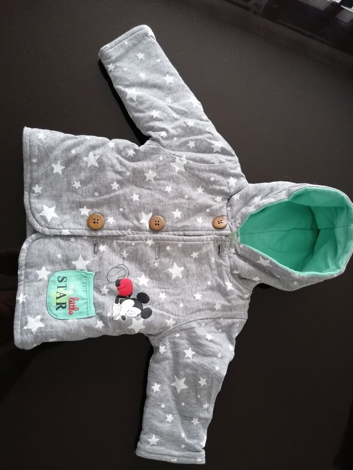 Un manteau et un petit haut manche longue Mickey taille 3 mois. Très bon état.