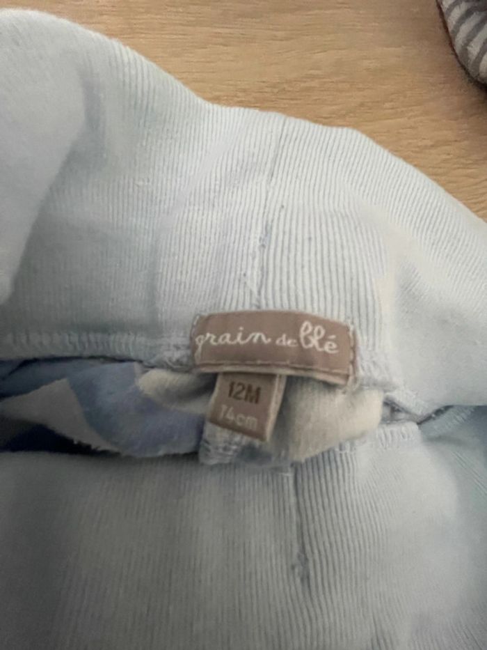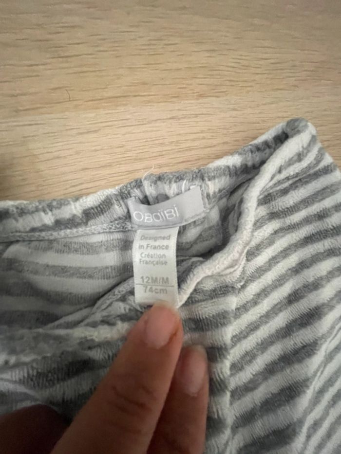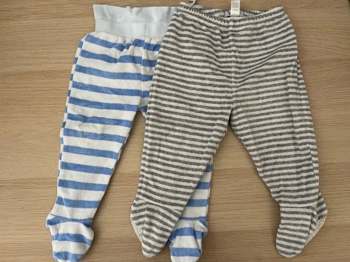 2 pantalons pyjamas avec pied Motif rayures Bleu: grain de blé Gris: obaibi