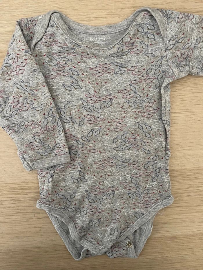 Body manches longues garçon Gris avec motifs poissons 100% coton