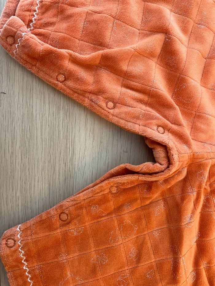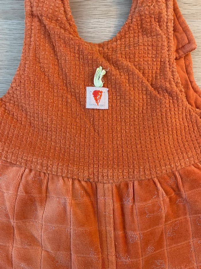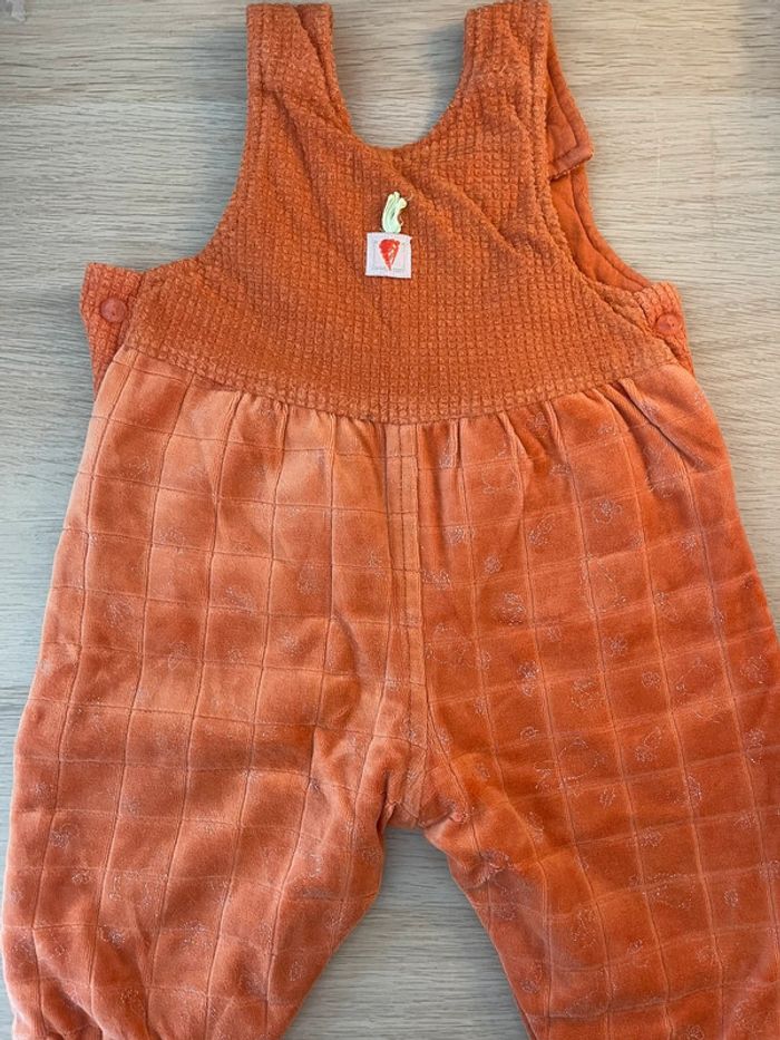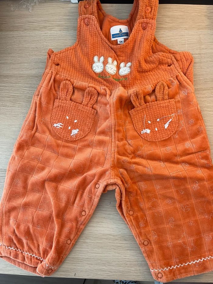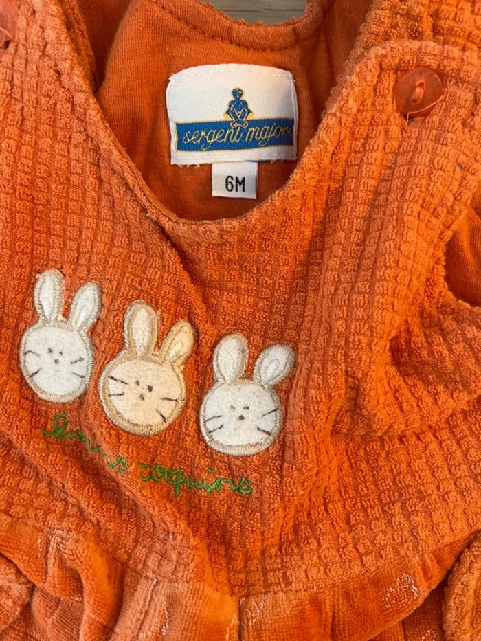 Salopette orange carotte vintage Motif 3 lapins - poches lapins Fermeture pression sans défaut 6 mois mixte TBE