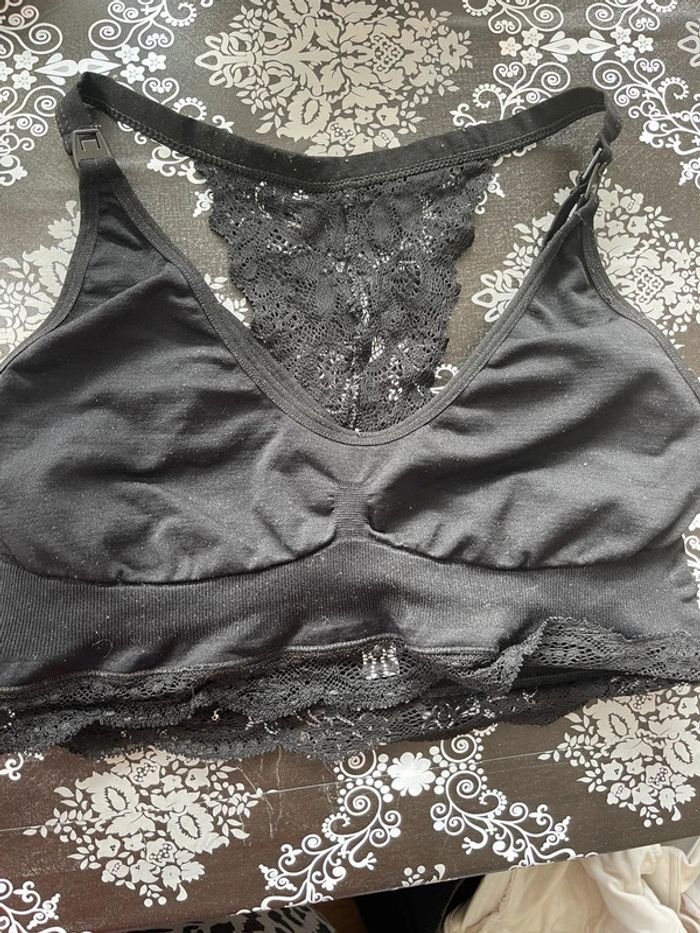 Brassière noire de grossesse et d’allaitement Avec de la jolie dentelle Pas de défaut Peu porté