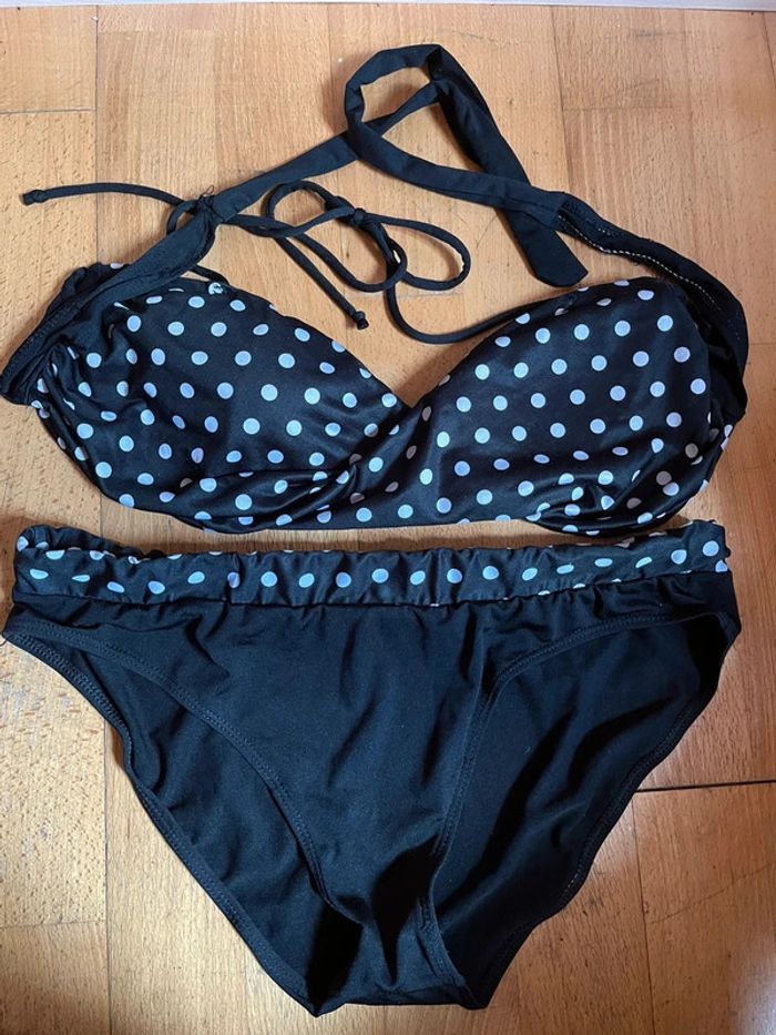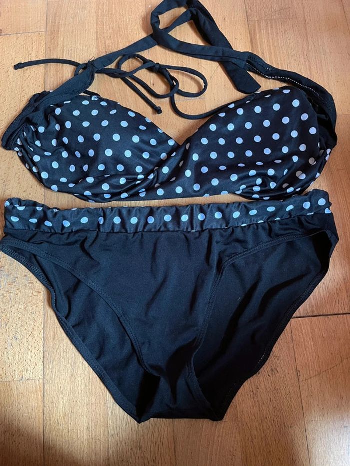 Maillot de bain 2 pièces noirs à pois blancs 44 - photo numéro 1