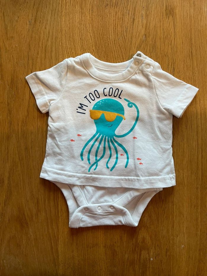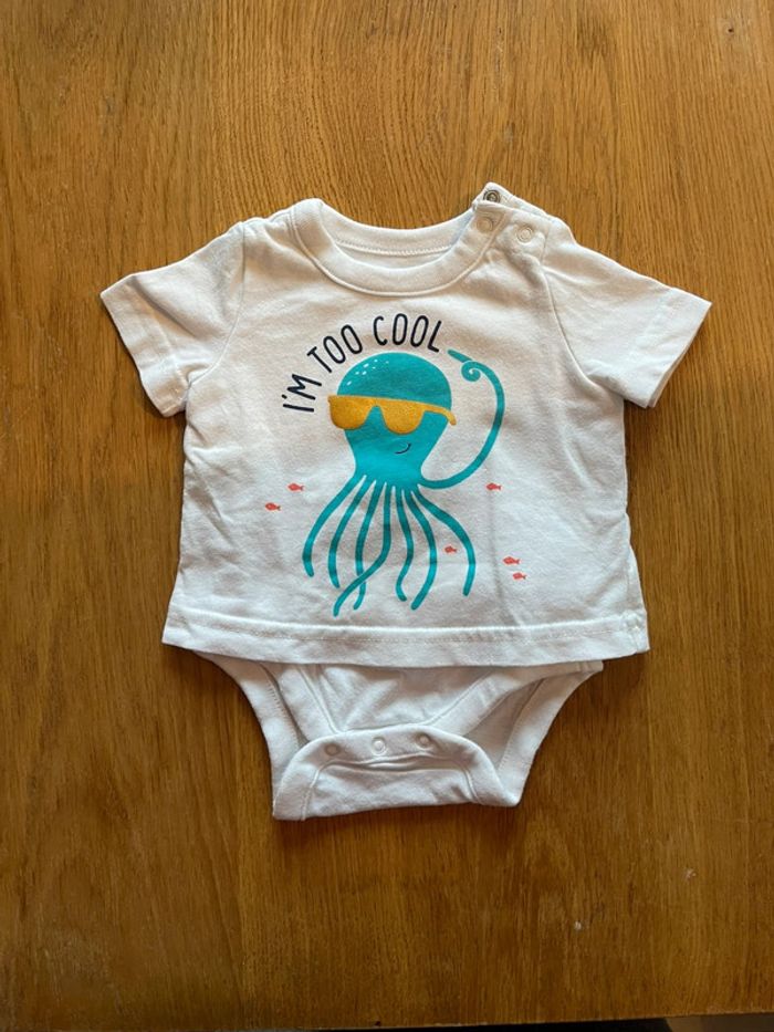 Body blanc t-shirt 2 en 1 Méduse thème mer 0-3 mois