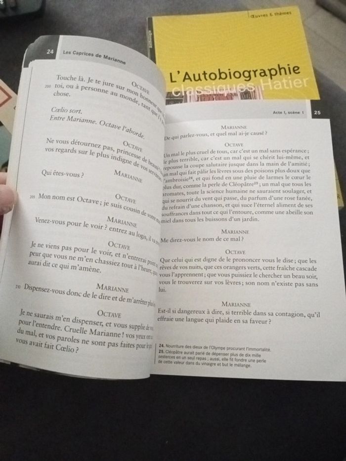 Lot de deux livres. Les caprices de Marianne d'Alfred de Musset. L'autobiographie édition classiques Hatier