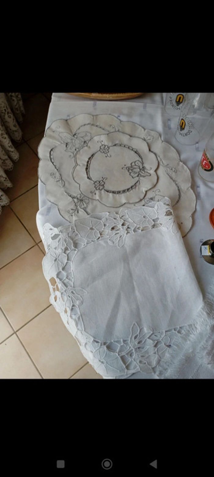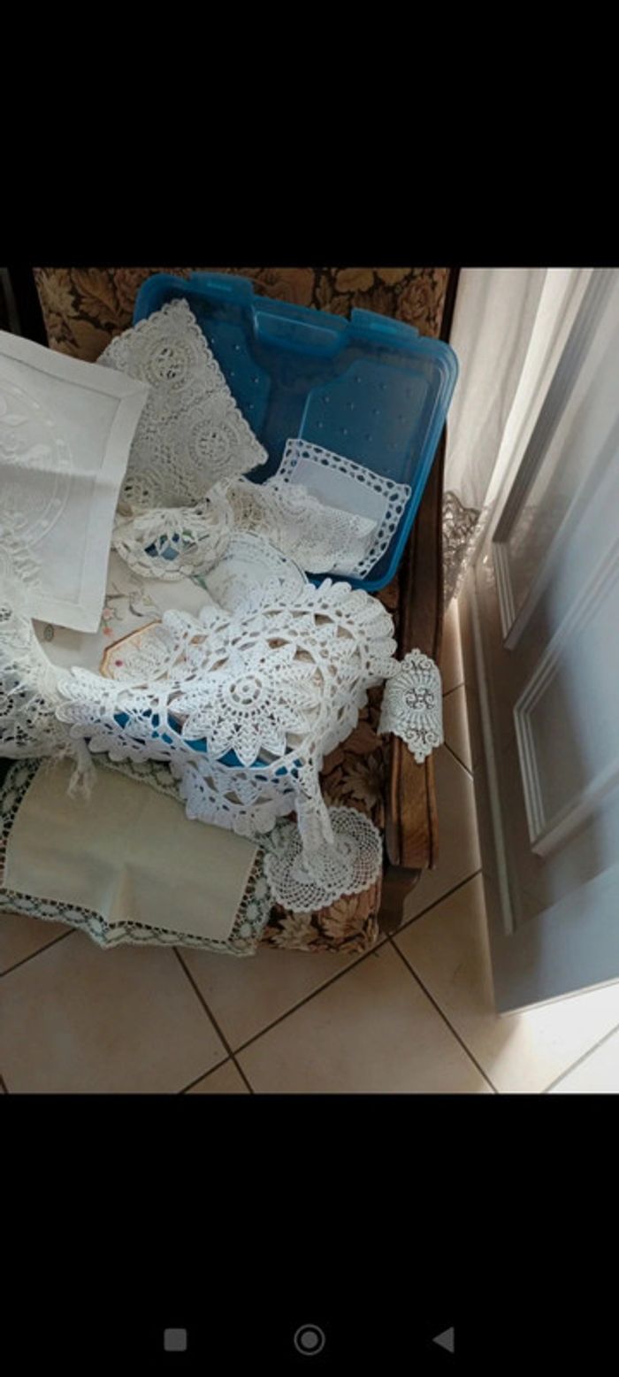 Gros lot de napperons de toutes sortes. Pour certains fait main.