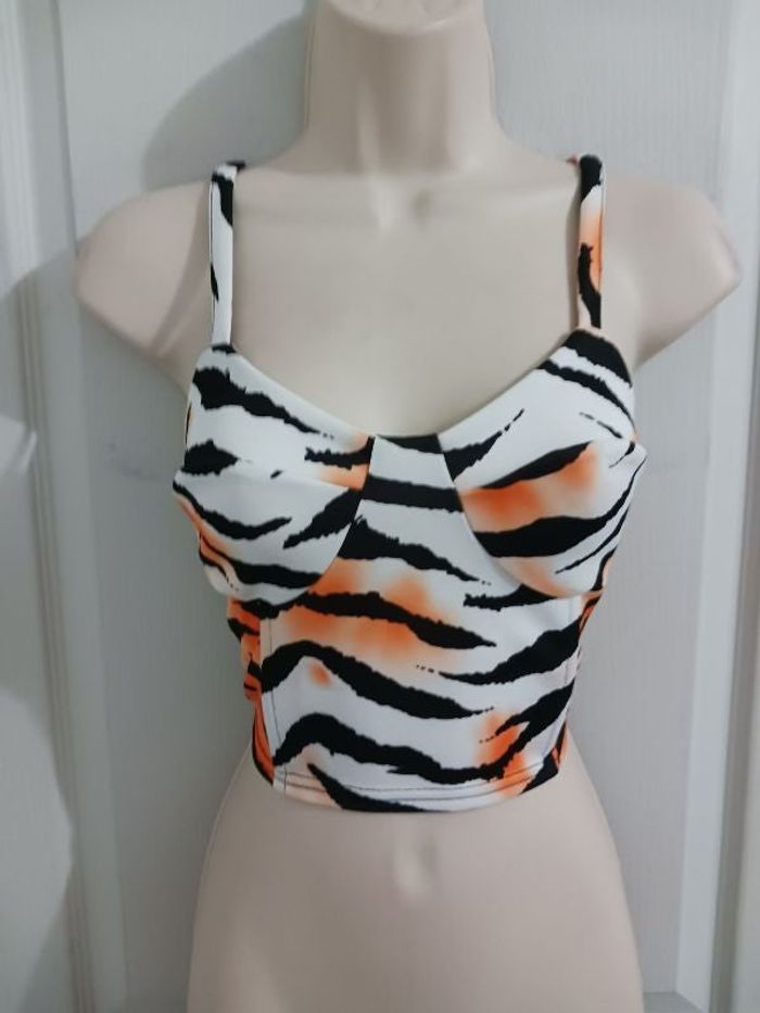 Top neuf, taille 36,blanc, orange et noir.